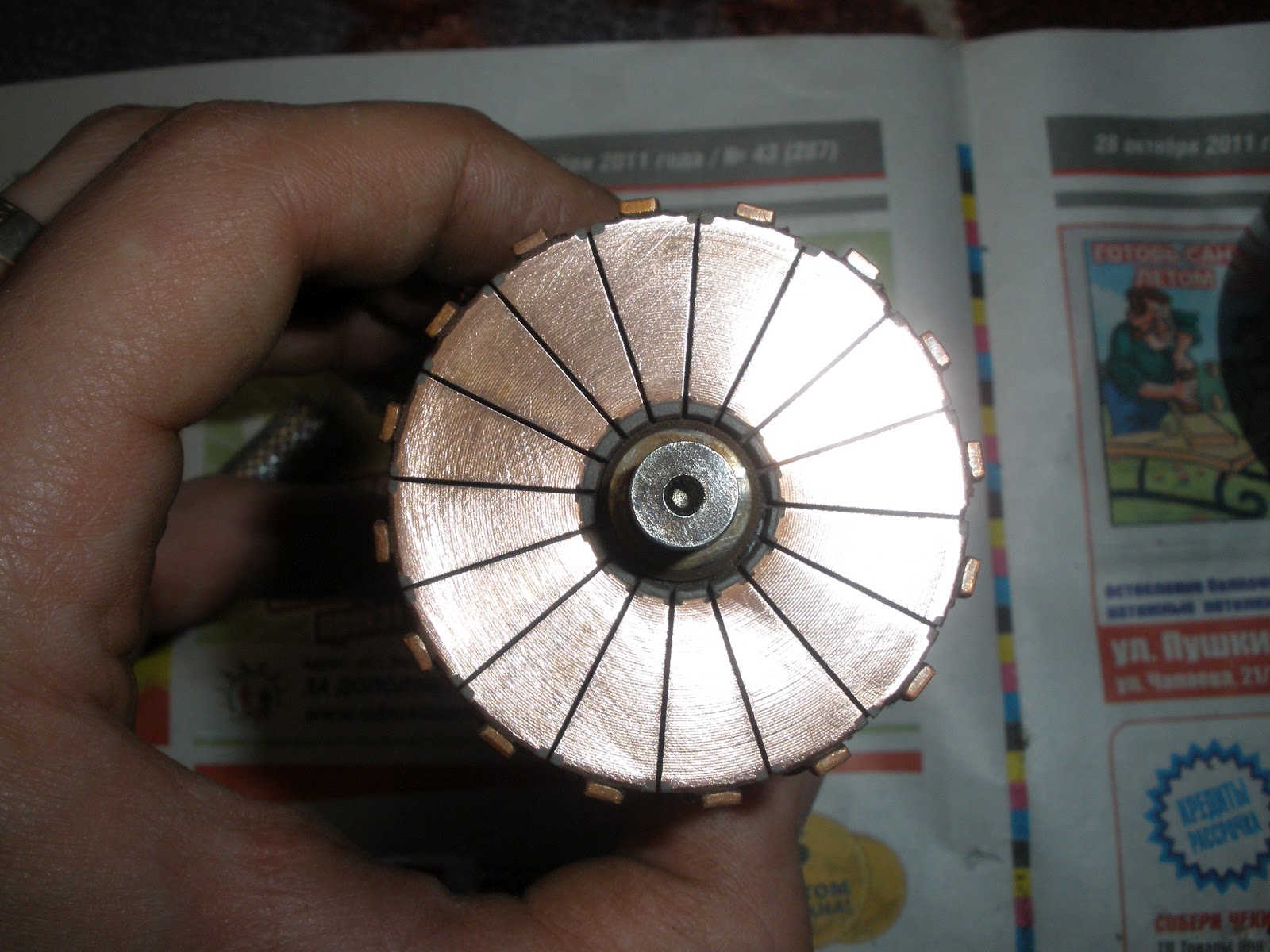 Контакты щеток и якоря тоже зачищаем мелкой наждачкой (без фанатизма), должно выглядеть так: